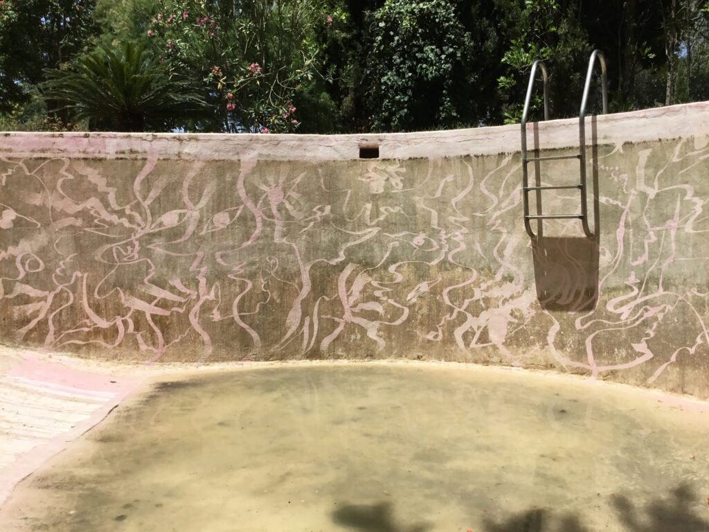 One of our collaborative artists Fátima Moreno did a project with the brand Paloma Wool. They created a limited edition silk piece with one of her drawings and shot a film of Fátima drawing with water at her family’s house in Granada.